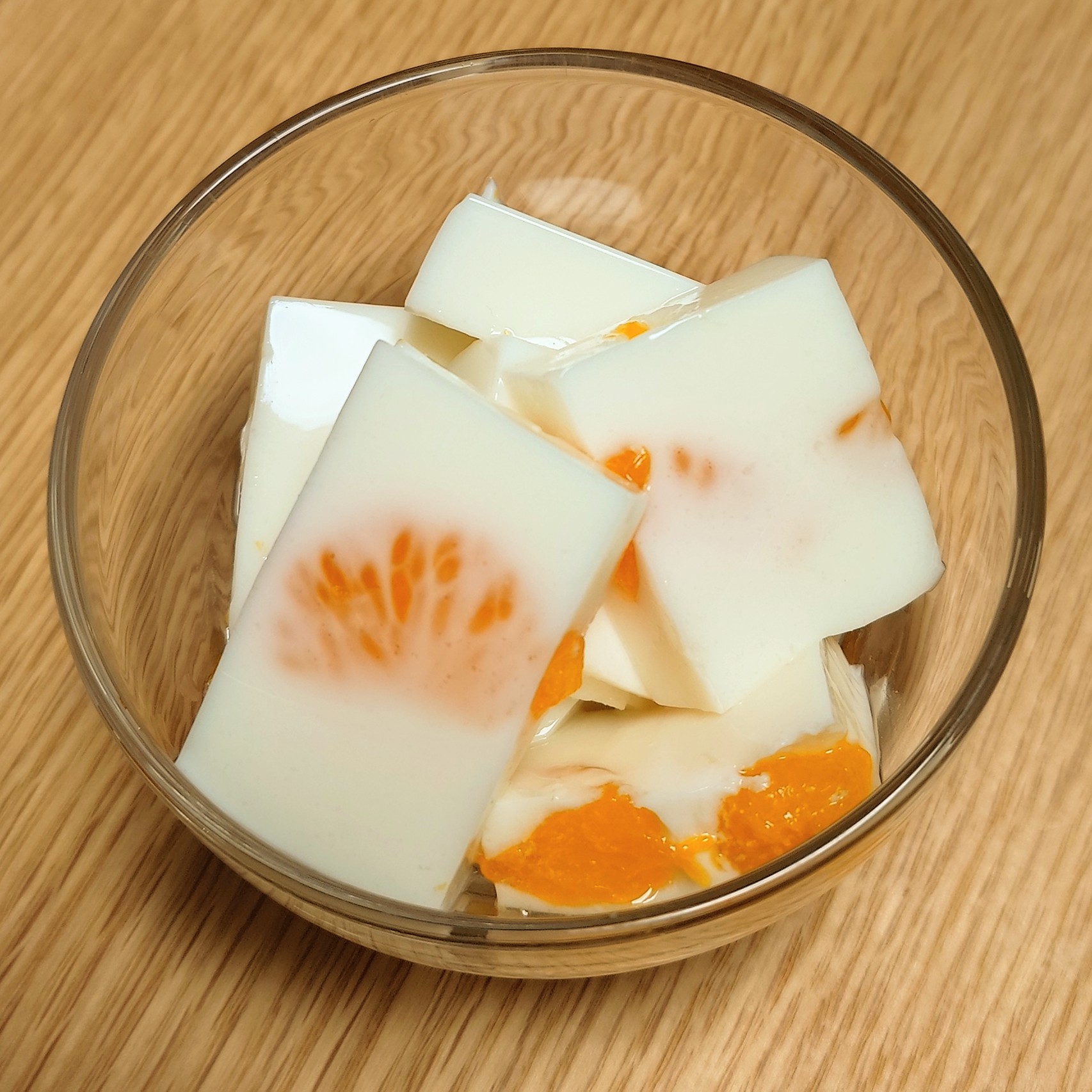 私はみかん入りの比較的シンプルな牛乳寒天を作りウォーミングアップをいたしました